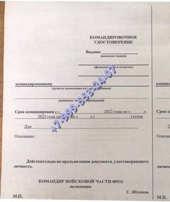 Заказать командировочное удостоверение военнослужащего в Мурашах можно и по иным причинам, например, необходимо срочно ехать на учения или в зону боевых действий. В таком случае следует обращаться к руководству с заявлением. Если человек потерял, или испортил документы, он может обратиться в нашу компанию. Купить командировочное удостоверение военнослужащего с доставкой мы предлагаем недорого.
